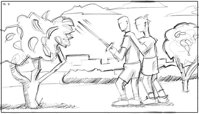 Thando protects Tamy from the imaginary dragon tree! |
