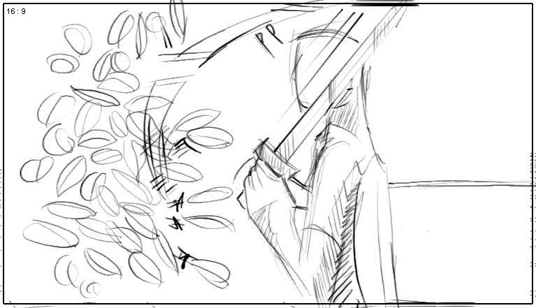 Thando is startled by something rustling in the bush and swings at the leaves |