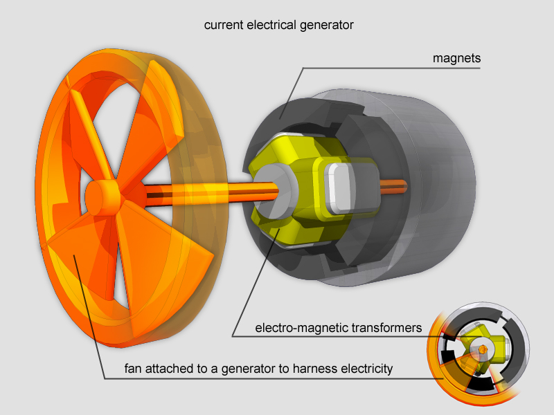 electro-magnetic generators into the casing -thereby avoiding erosion